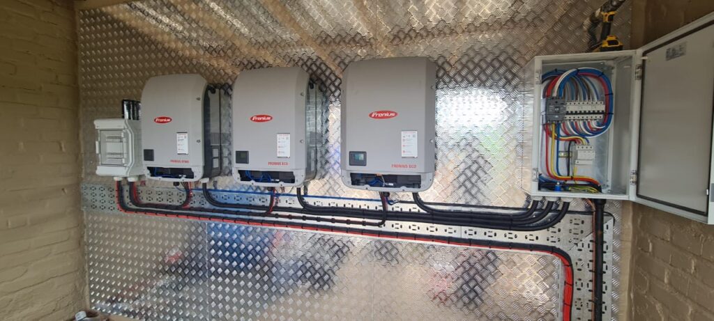 This process results in into savings from 30% up to 70% depending on the nature of the business. Up to date Elmorex have installed in excess of 9 Megawatt’s worth of Grid Tie systems at over 120 locations in different provinces. Such as Shopping Centres , Factories , Abattoirs , Supermarkets , Filling Stations , Lodges, Engineering Works, Agricultural and many more.