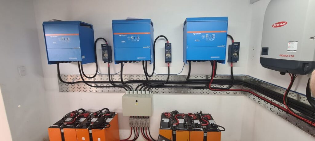 It is crucial that that off grid systems are designed by one of our specialists. An Off Grid system consist of solar panels, off grid inverters, charge controllers and a
